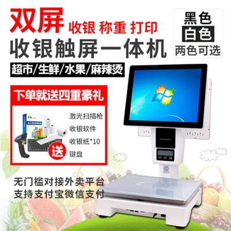 选用电子秤收银系统产品包括:超市收银台pos收款机(pos收银机)、正版商超收银软件、钱箱、条码扫描枪、小票打印机(票据打印机)、水果条码秤(条码秤 条码打印秤) 等。