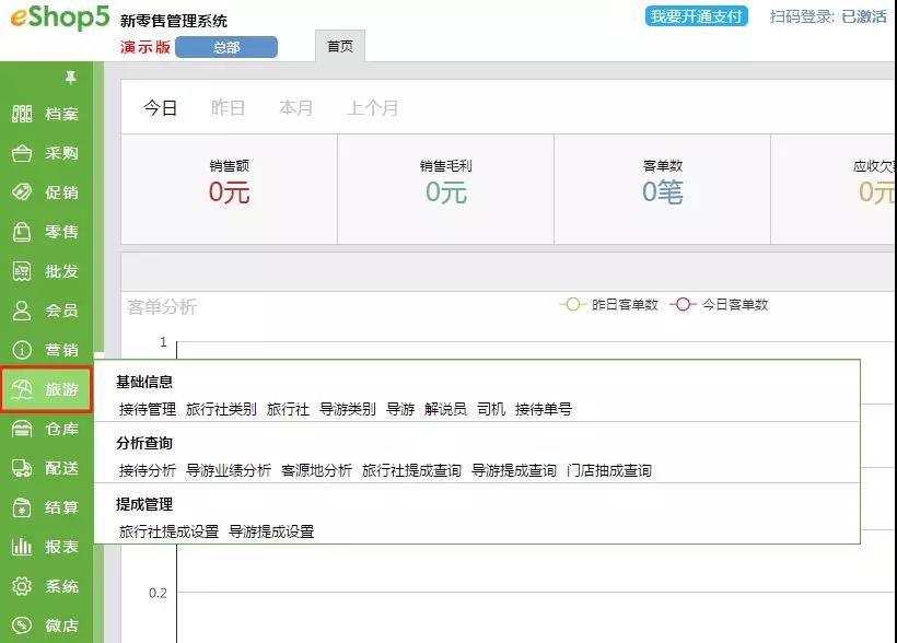 eShop新零售版在超市业态基础上加入了旅游超市模块,也就是说除了连锁超市和社区超市,eShop能管理旅游超市。对与旅行社相关的业务档案进行管理,解说员和司机、旅行团接待、提成机制、导游业绩、导游和旅行社的结算对账进行管理等。