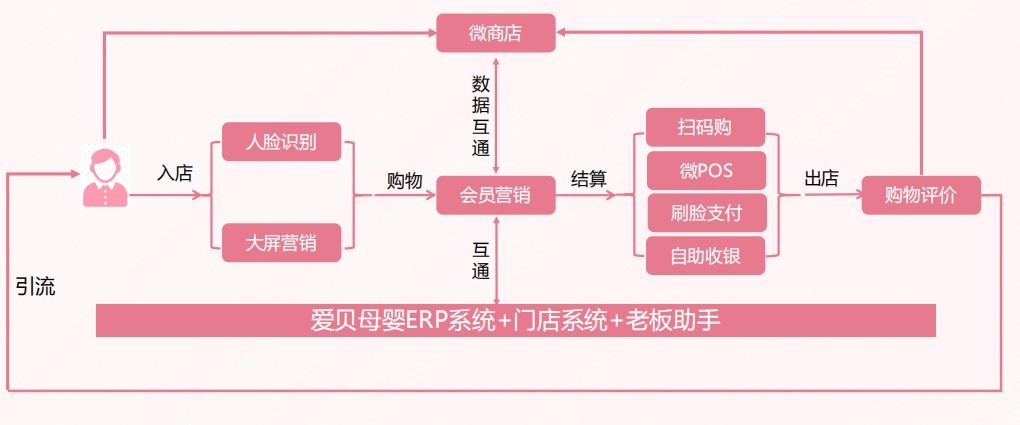 基于以上,咱义和光普思迅软件提供了如下解决方案,先看看爱贝母婴7设计架构图
